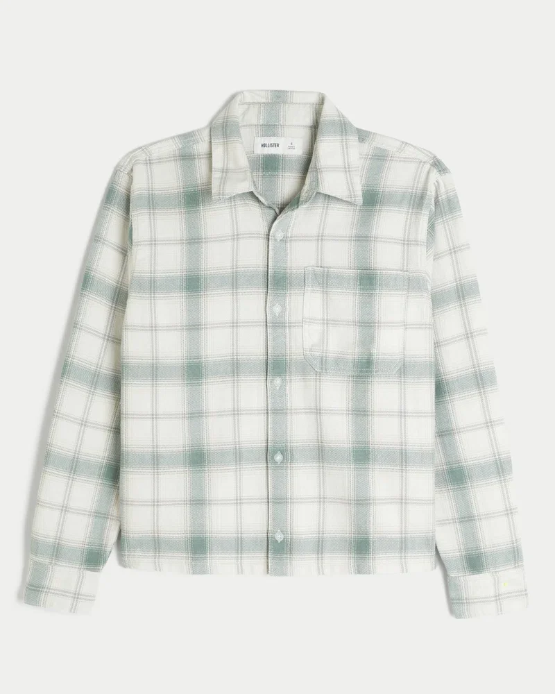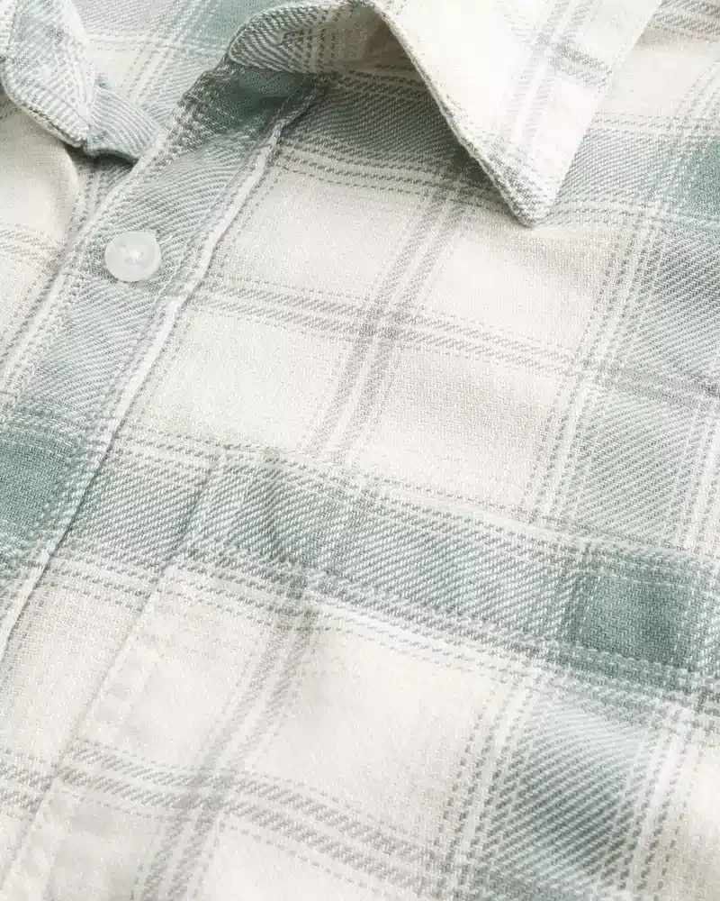 Camisa clásica de suave tejido de franela, con cierre completo de botones y bolsillo en el lado izquierdo del pecho. Mangas largas, cuello. Corte recto.