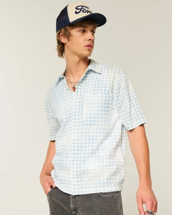 Esta camisa clásica de manga corta tiene cierre completo con botones y bolsillo en el pecho izquierdo. Mangas cortas, cuello. Corte recto.