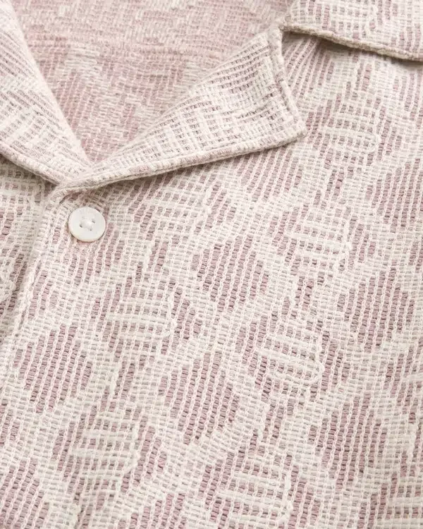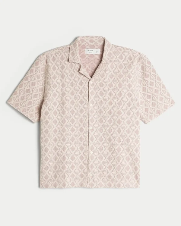 Confeccionada con un suave tejido de estilo croché, esta clásica camisa abotonada presenta un estampado de rombos en toda la prenda y mangas cortas. Cierre con botones, cuello. Corte recto.