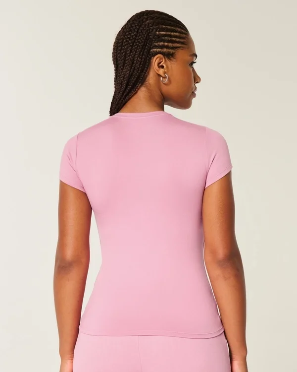 Una camiseta baby tee bonita y cómoda, confeccionada en un tejido supersuave con un aspecto y tacto sin costuras, diseñada con una silueta ligeramente encogida. Cuello redondo y manga corta.