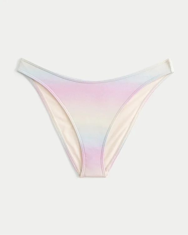 Una bonita braguita de bikini confeccionada en un suave tejido de baño con brillo y cobertura atrevida. Silueta de talle medio y corte alto, con degradado de color.