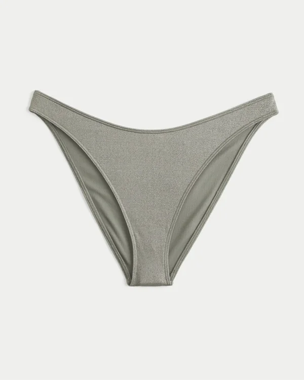 Una bonita braguita de bikini confeccionada en un suave tejido de baño con brillo y cobertura atrevida. Silueta de talle medio y corte alto.