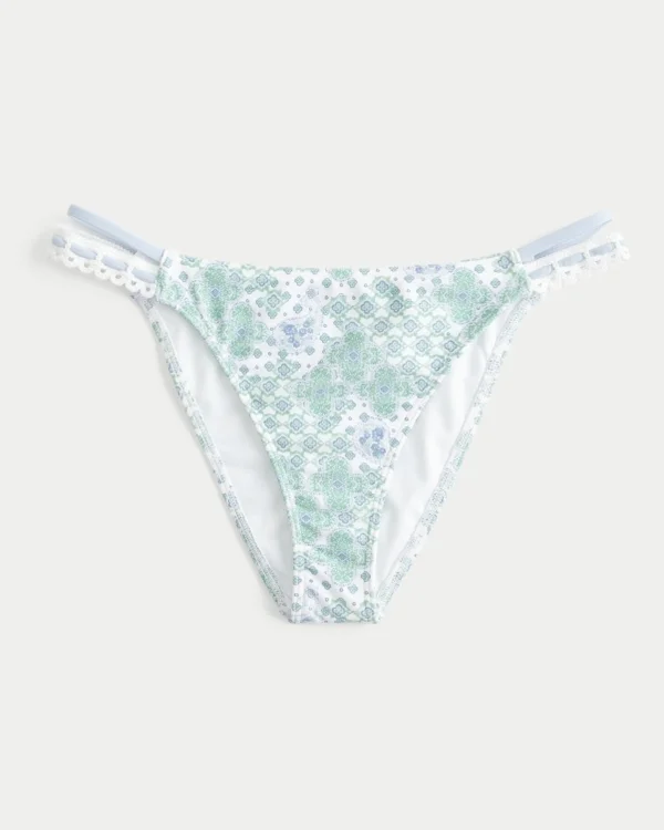 Bonita braguita de bikini con tirantes dobles laterales y ribete de estilo croché. Corte atrevido.