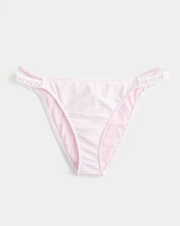 Bonita braguita de bikini con tirantes dobles laterales y ribete de estilo croché. Corte atrevido.
