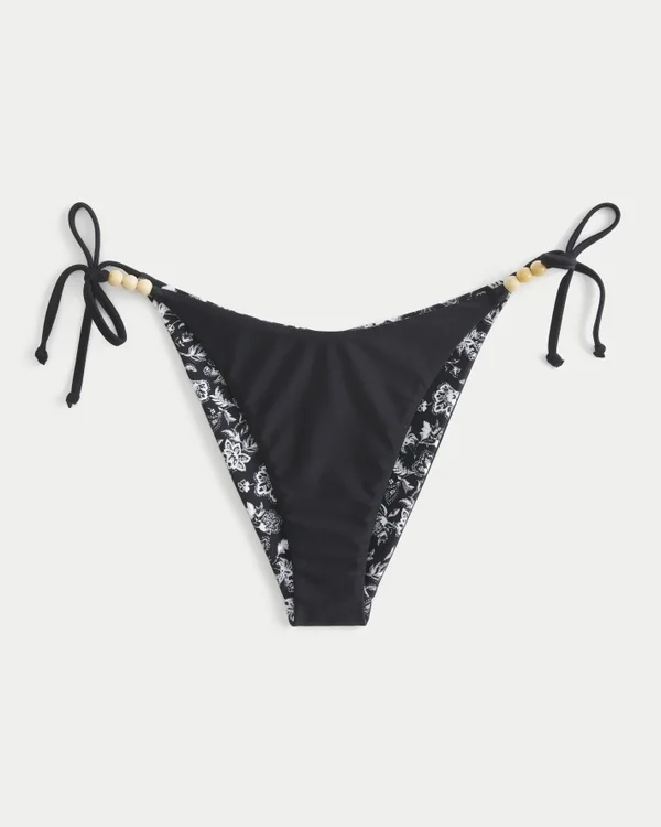 Bonito bikini reversible con lazos laterales y detalles de cuentas. Corte atrevido.