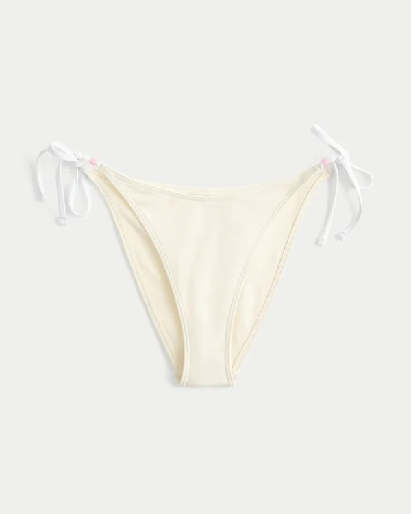 Bonita braguita de bikini con lazos laterales y detalles de cuentas. Corte atrevido.