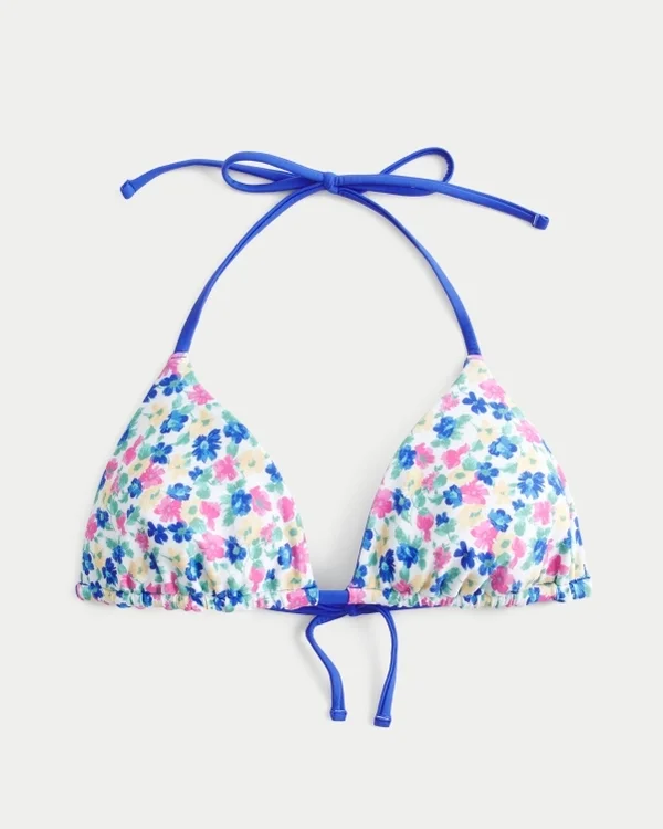 Un bonito top de bikini triangular reversible con tirantes halter y cierre con lazo.