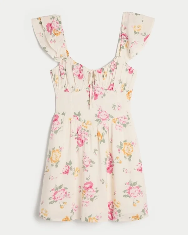 Bonito y muy suave, este vestido presenta detalles fruncidos en el busto, un detalle de lazo en la parte delantera y mangas dobles con volantes. Detalle en la espalda que cubre el sujetador, falda fluida, pantalones cortos ocultos,