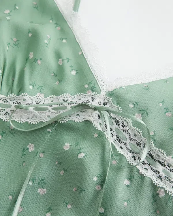 Este sencillo vestido lencero cuenta con un bonito lazo en la cintura con detalles de encaje. Lazo ajustable en la espalda y tirantes ajustables.