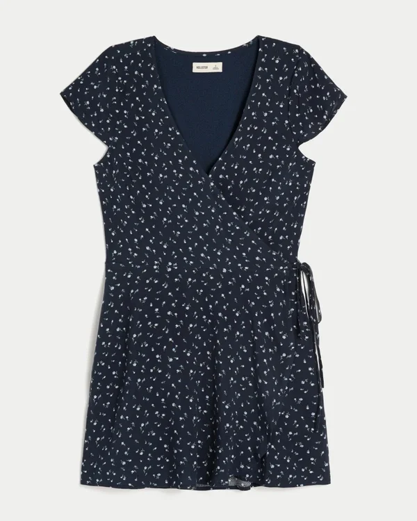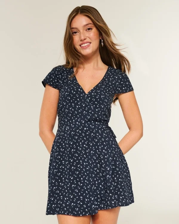 Este bonito vestido supersuave presenta un detalle cruzado en la parte delantera y un escote en V. Detalle de lazo lateral, mangas cortas.