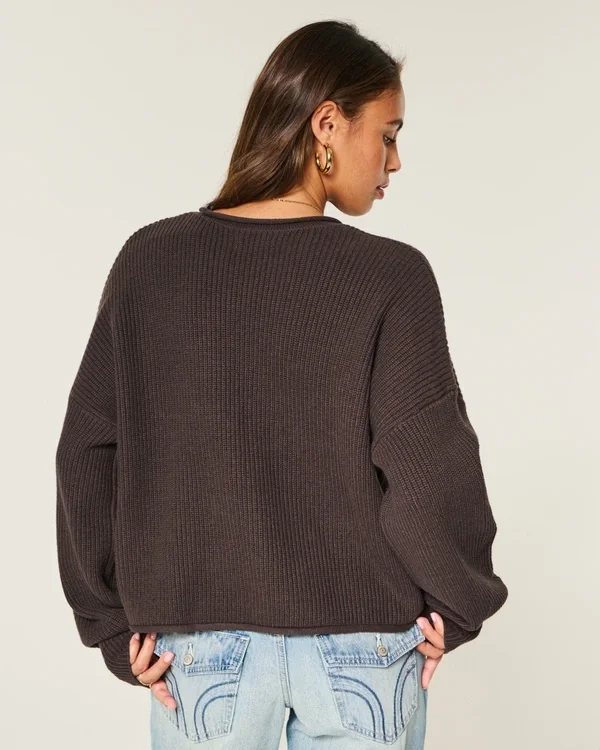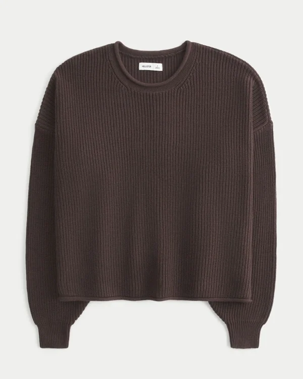 Un jersey cómodo y supersuave con cuello redondo enrollado y dobladillo enrollado. Mangas largas con dobladillos acanalados. Corte holgado.