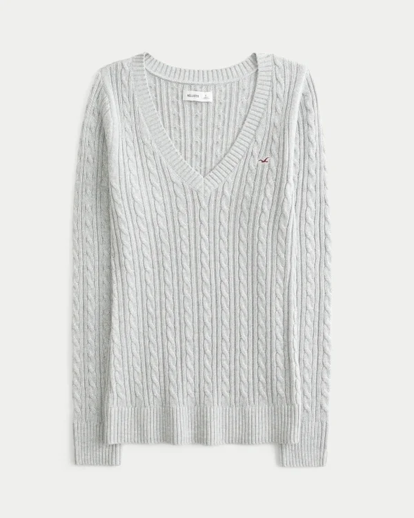 Un jersey supersuave y cómodo con el clásico diseño de punto trenzado y un logotipo bordado en el lado izquierdo del pecho. Cuello en V, ribetes acanalados, largo extra y mangas largas. Corte ajustado.