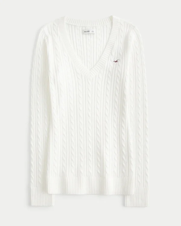 Un jersey supersuave y cómodo con el clásico diseño de punto trenzado y un logotipo bordado en el lado izquierdo del pecho. Cuello en V, ribetes acanalados, largo extra y mangas largas. Corte ajustado.