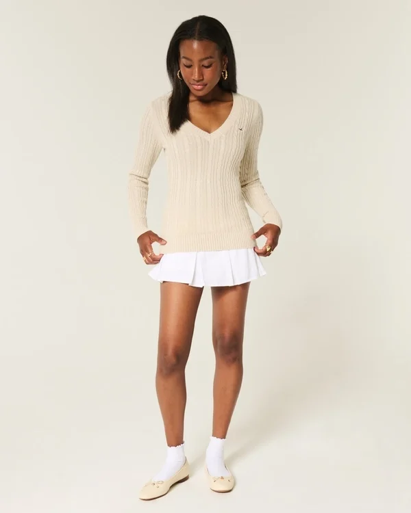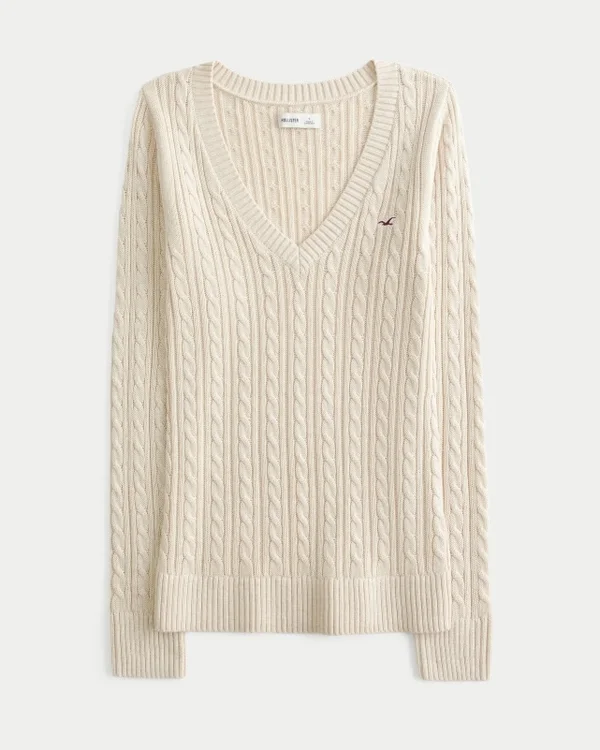 Un jersey supersuave y cómodo con el clásico diseño de punto trenzado y un logotipo bordado en el lado izquierdo del pecho. Cuello en V, ribetes acanalados, largo extra y mangas largas. Corte ajustado.