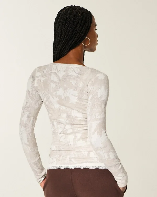 Una camiseta Henley supersuave diseñada con un largo más largo, mangas largas y tapeta con botones. Logotipo bordado en el lado izquierdo del pecho. Corte holgado.