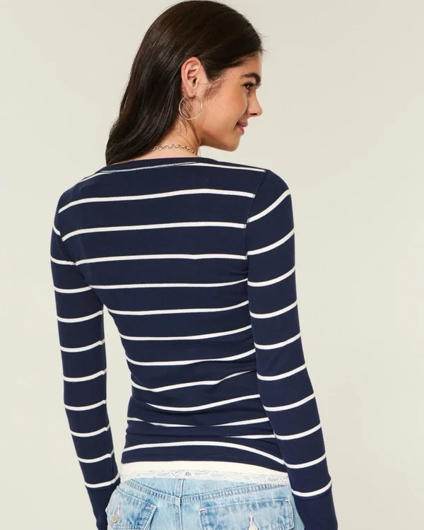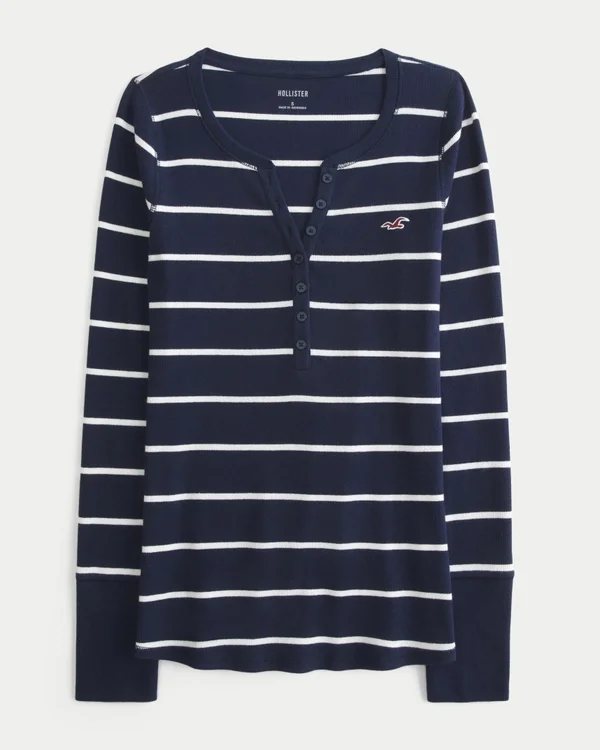 Una camiseta Henley supersuave diseñada con un largo más largo, mangas largas y tapeta con botones. Logotipo bordado en el lado izquierdo del pecho. Corte holgado.
