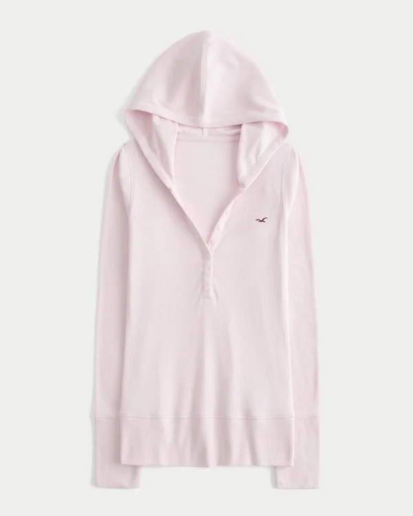 Cómoda y supersuave camiseta Henley con capucha, tapeta de botones y logotipo bordado en el lado izquierdo del pecho. Mangas largas, largo extra. Corte ajustado.
