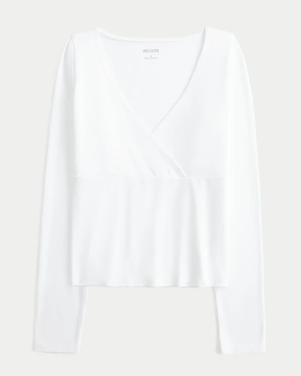 Una camiseta de manga larga bonita y cómoda, confeccionada en un tejido supersuave con un aspecto y un tacto sin costuras. Escote en V cruzado. Corte ajustado.
