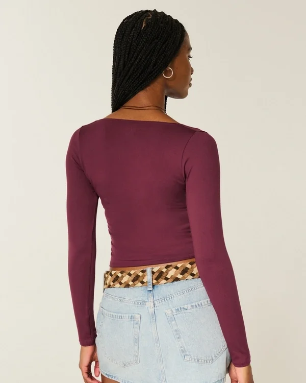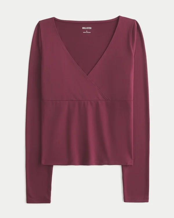 Una camiseta de manga larga bonita y cómoda, confeccionada en un tejido supersuave con un aspecto y un tacto sin costuras. Escote en V cruzado. Corte ajustado.