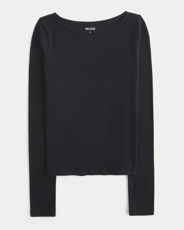 Camiseta de manga larga cómoda y supersuave en tejido de mezcla de algodón, con escote en V. Corte ajustado.