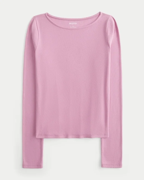 Camiseta de manga larga cómoda y supersuave en tejido de mezcla de algodón, con escote en V. Corte ajustado.