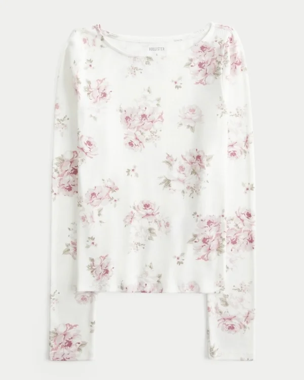 Camiseta de manga larga cómoda y supersuave en tejido de mezcla de algodón, con escote en V. Corte ajustado.