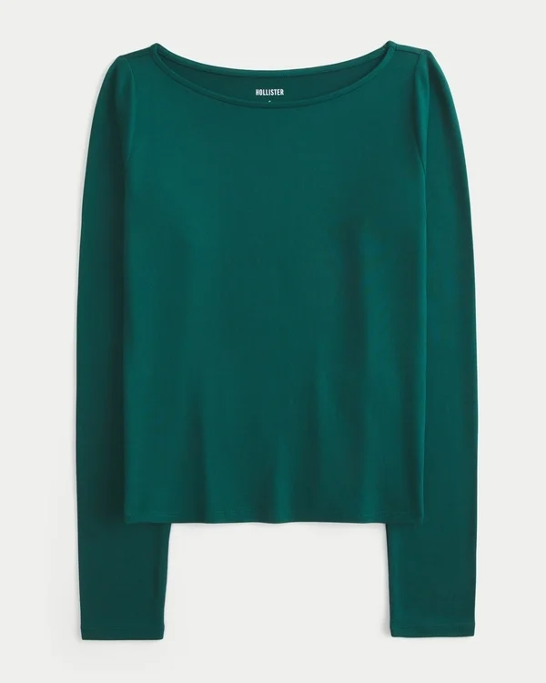 Esta bonita y cómoda camiseta está confeccionada con un tejido supersuave con un aspecto y tacto sin costuras. Escote en V, mangas largas. Corte ajustado.