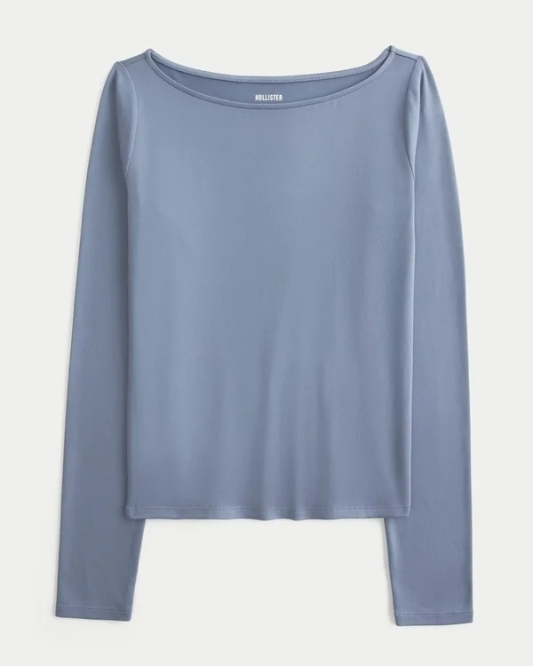 Esta bonita y cómoda camiseta está confeccionada con un tejido supersuave con un aspecto y tacto sin costuras. Escote en V, mangas largas. Corte ajustado.