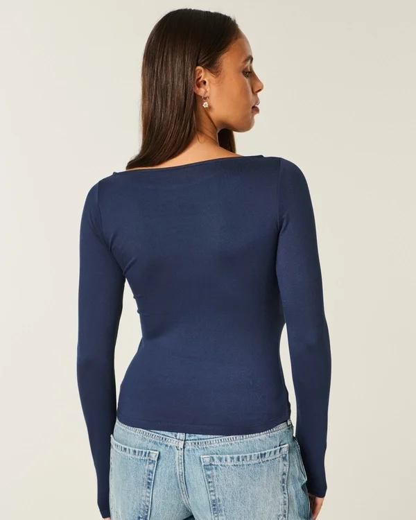 Esta bonita y cómoda camiseta está confeccionada con un tejido supersuave con un aspecto y tacto sin costuras. Escote en V, mangas largas. Corte ajustado.