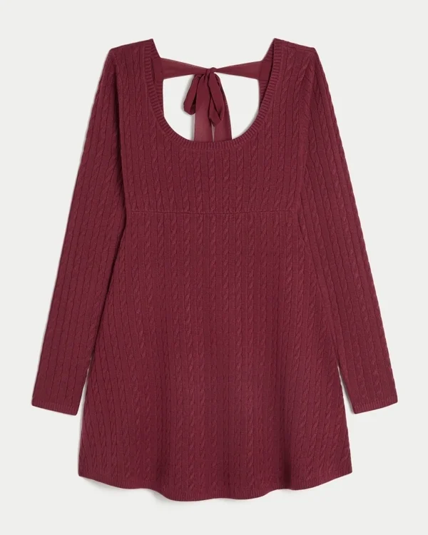 Bonito y supersuave, este vestido de punto está diseñado con una silueta babydoll y presenta patrones de punto trenzado y un detalle de lazo en la espalda. Mangas largas, escote redondo.